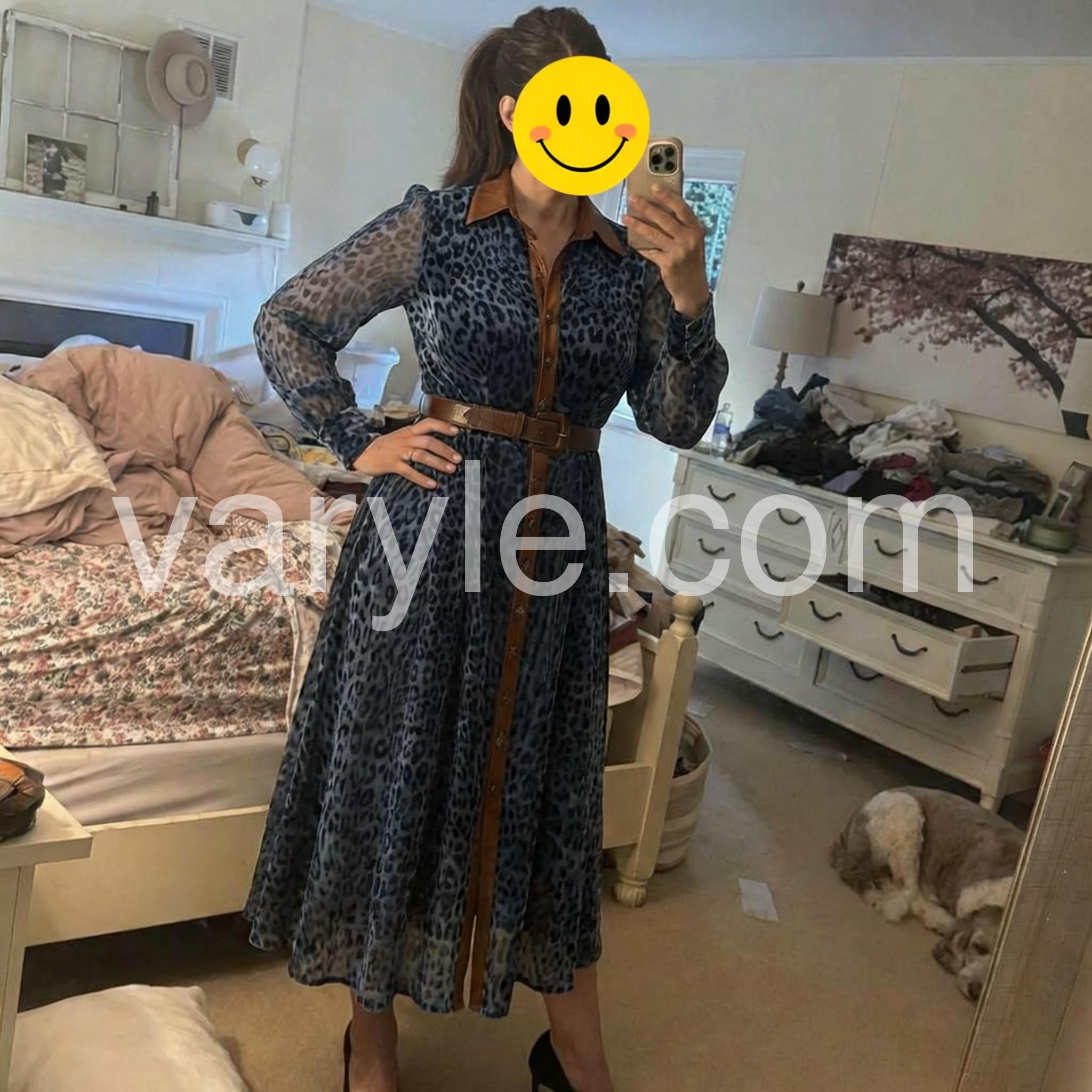 Yes!It runs true to the garment size chart please choose your size based on your measurements.Elevate your wardrobe with this Blue Long Sleeve Leopard Midi Dress, expertly designed to blend bold animal print with a sophisticated silhouette. The long sleeves offer versatility for cooler days, while the midi length ensures a flattering and elegant fit. Crafted to provide both style and comfort, this dress is perfect for making a confident statement at any occasion.