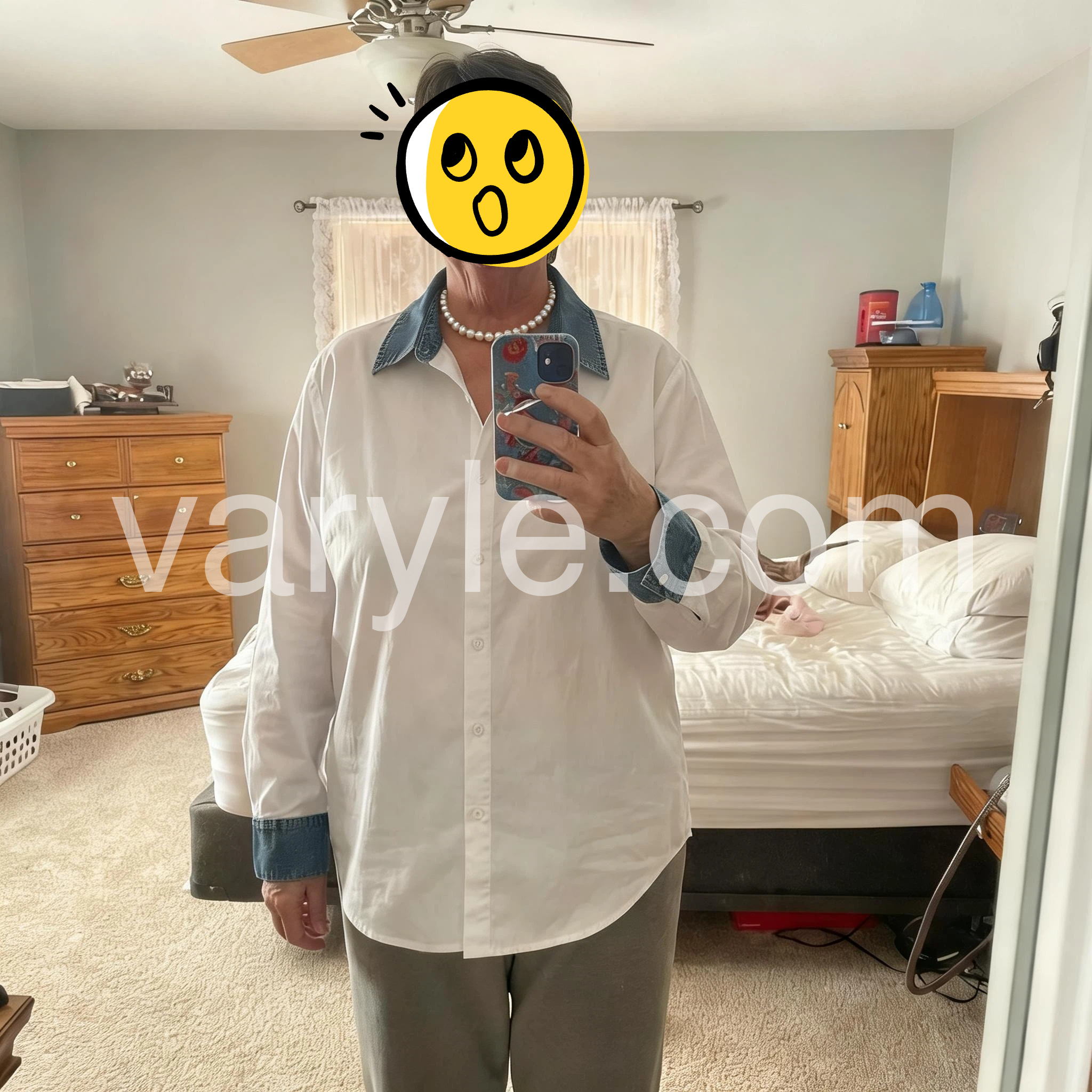 Yes!It runs true to the garment size chart please choose your size based on your measurements.Elevate your casual wardrobe with this refined white denim shirt, featuring distinctive collar and cuff detailing that adds contemporary sophistication. Crafted from durable denim fabric, this versatile piece transitions seamlessly from weekend wear to smart-casual occasions. The structured collar and reinforced cuffs provide a polished silhouette while maintaining the relaxed comfort of classic denim. Perfect for layering or wearing solo, this shirt pairs effortlessly with jeans, chinos, or tailored trousers for a curated, intentional look.