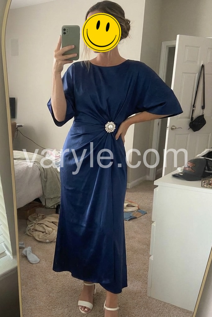 Yes!It runs true to the garment size chart please choose your size based on your measurements.Elevate your wardrobe with this sophisticated navy satin midi dress, designed for the discerning woman who values timeless elegance. The flowing cape sleeves add a dramatic yet refined silhouette, while the luxurious satin fabric drapes beautifully against the body. Perfect for evening events, formal occasions, or elevated everyday wear, this versatile piece transitions seamlessly from day to night. The midi length offers a modern take on classic sophistication, providing both coverage and movement. A wardrobe essential that combines understated luxury with contemporary design.