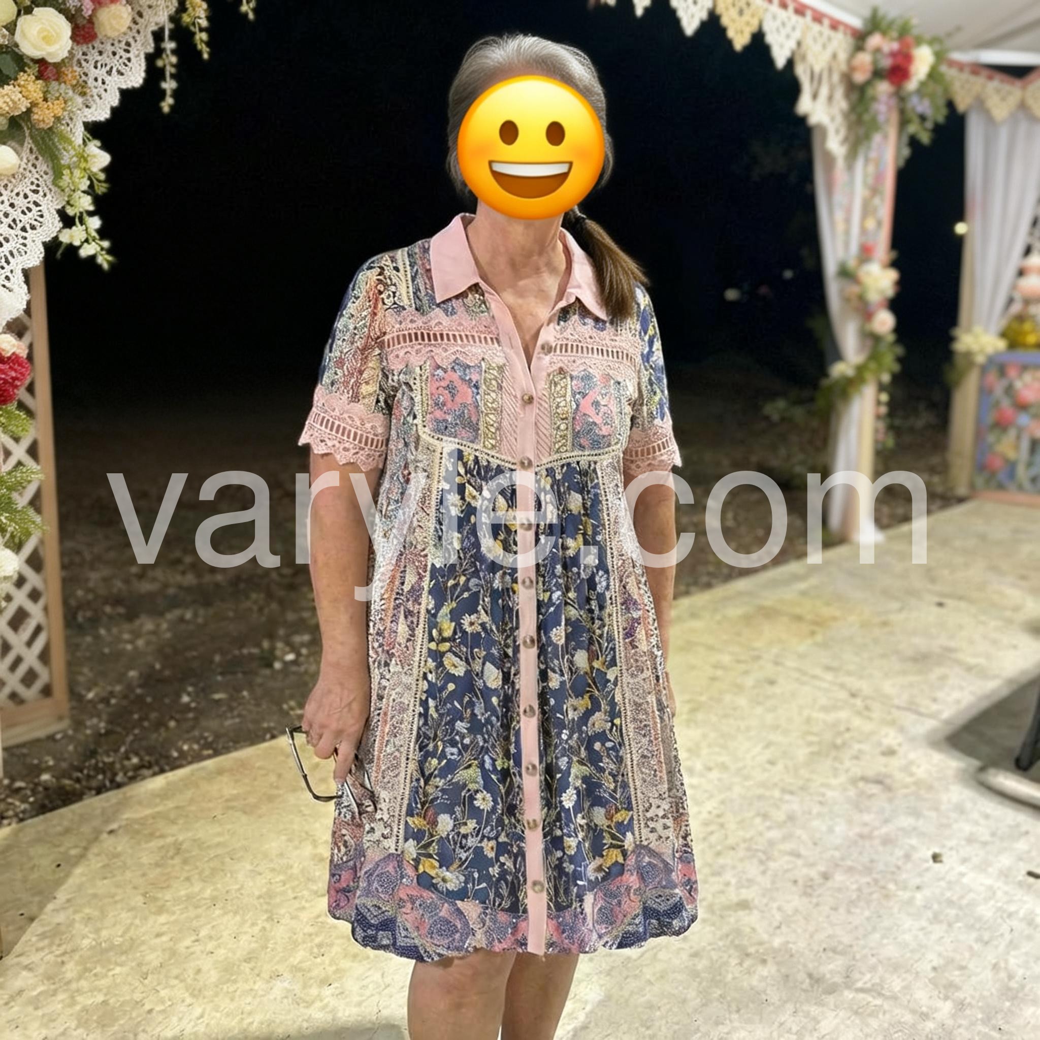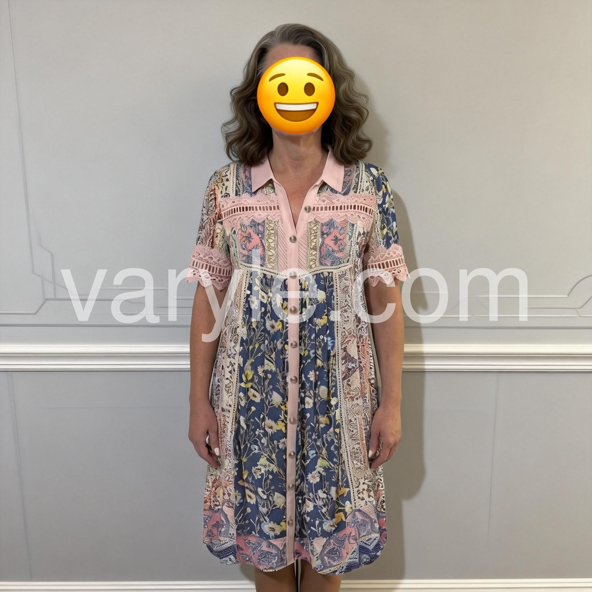 - Neckline: Collared