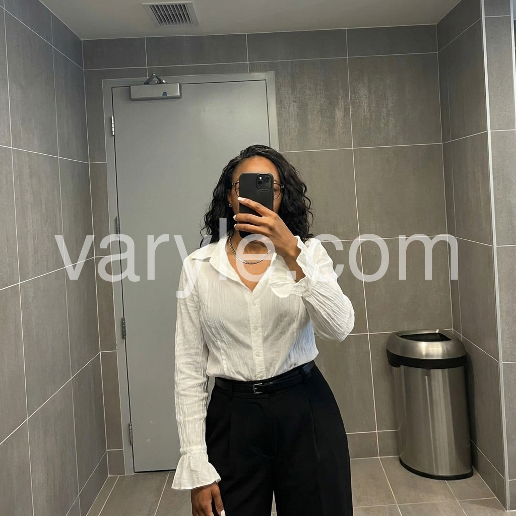 Yes!It runs true to the garment size chart please choose your size based on your measurements.This white plain button-down shirt features a deep V-neck design and flared cuffs for a sophisticated silhouette. Crafted with clean lines and minimal detailing, it offers a versatile, polished look ideal for both professional settings and elegant casual wear. The flared cuffs add a subtle statement, elevating the classic button-down style.