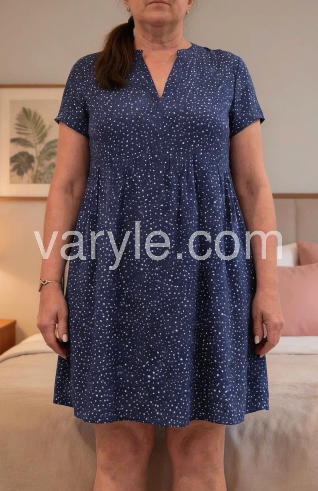 Yes!It runs true to the garment size chart please choose your size based on your measurements.This Dreamy Blue Short Sleeve Midi Dress offers a versatile, elegant solution for any occasion. Made with high-quality fabric, this dress provides comfort and effortless style. The short sleeves and midi length add a touch of sophistication, while the dreamy blue color is perfect for both day and night events. Elevate your wardrobe with this timeless piece.
